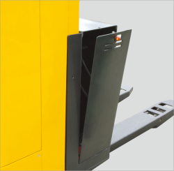 ■ 貨叉頭部設(shè)計(jì)有導(dǎo)向輪,進(jìn)出托盤(pán)順暢。